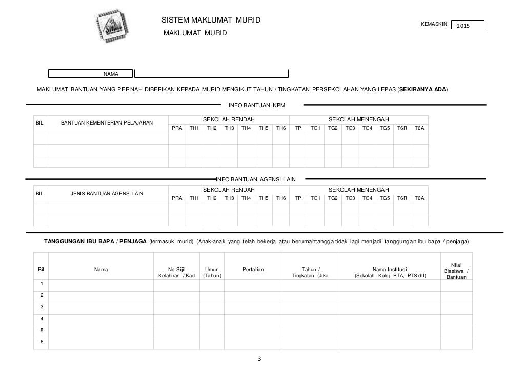 Related : Borang Sistem Maklumat Murid - Berikut merupakan borang maklumat murid yang telah dihasilkan berdasarkan aplikasi pangkalan data murid apdm..