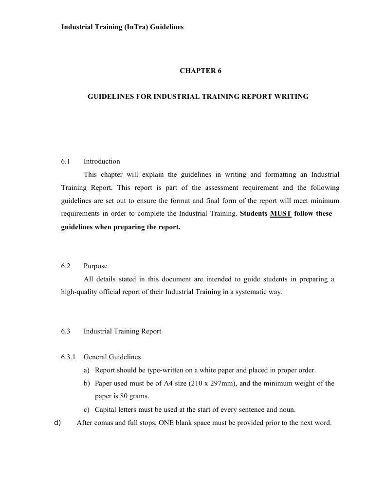 Related : Summary Of Industrial Training Report : An actual sketch of the format and contents of the reports as well as a specification of the media used, their frequency, size and numbers of copies required are..